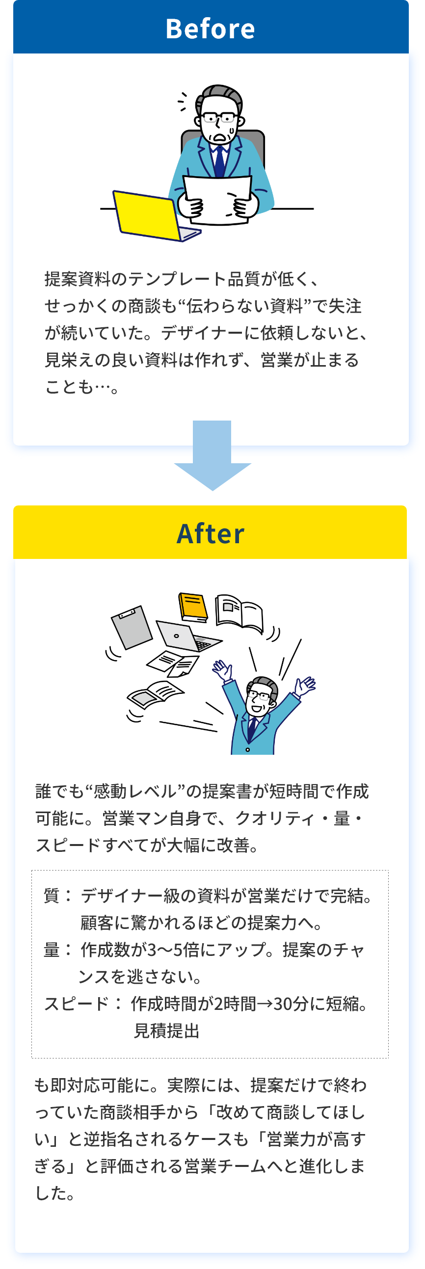 営業マン1人あたりの提案の量・質・スピードが飛躍的に向上する