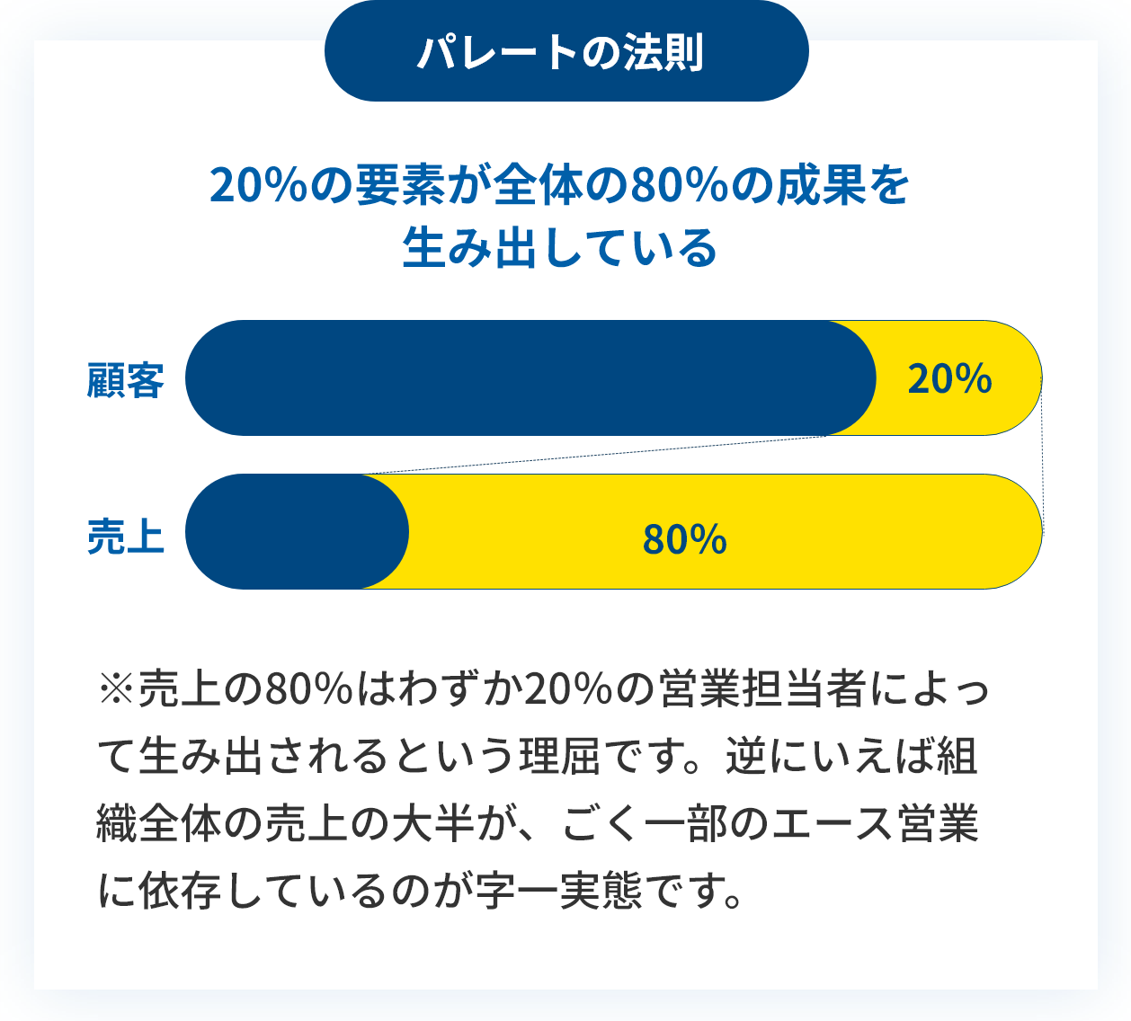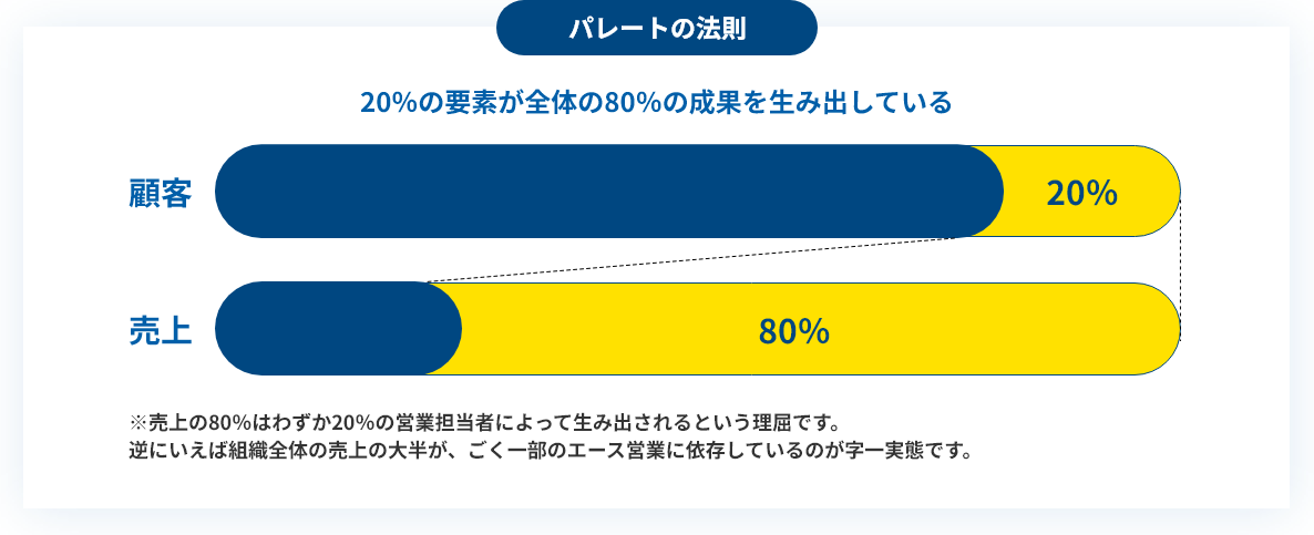 営業の現場では、「パレートの法則(80:20の法則)」が
