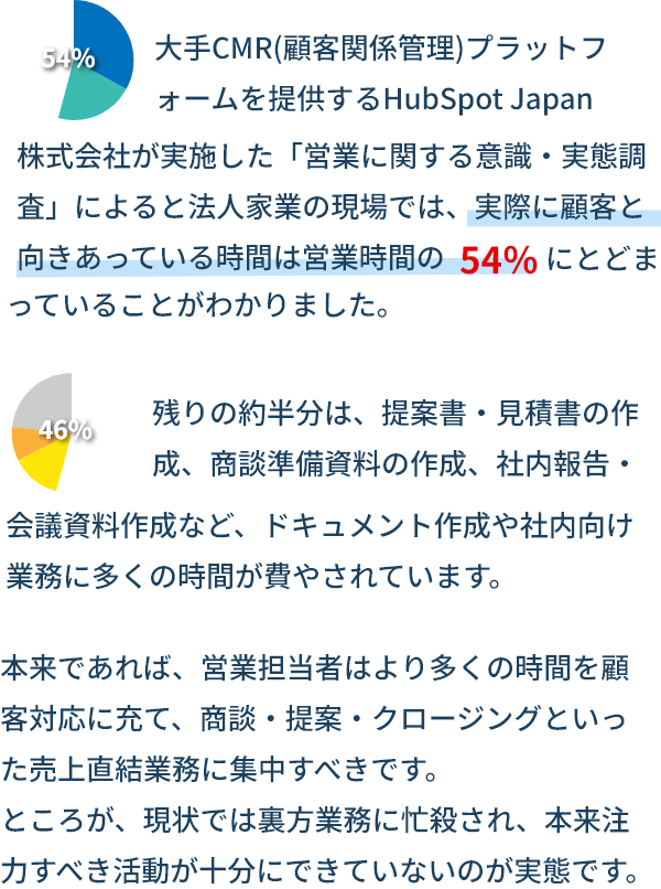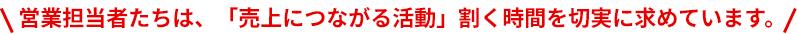 加えて今、営業現場では、裏方業務に追われて本来の営業活動にリソースを割けないという新たな問題が深刻化しています。