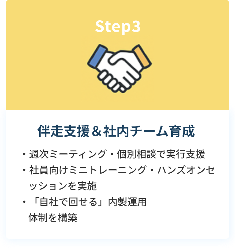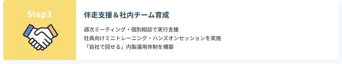 成果が出るまで、徹底的に伴走します。