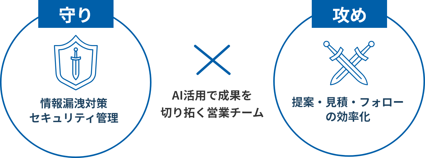 そこで私たちは、「攻め」と「守り」の両輪で、営業DXをサポートします。